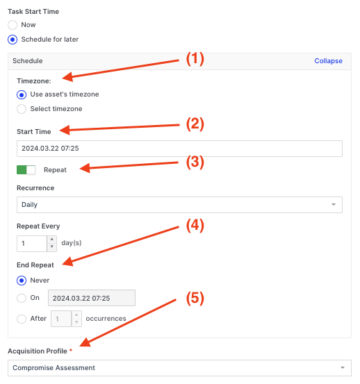 - Lastly, choose the acquisition profile you wish to apply to the scheduled task.