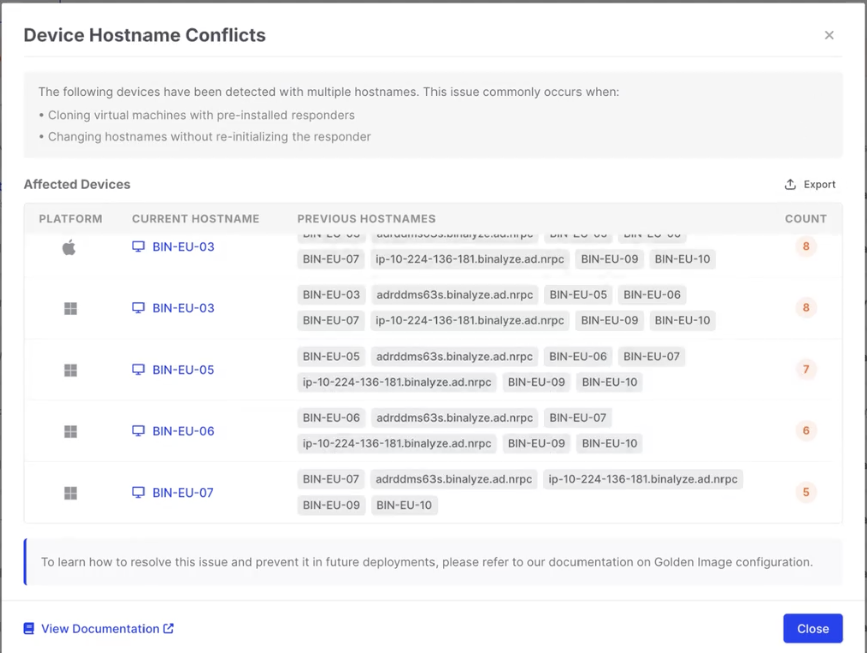 In AIR a Golden Image is for customers who want to use the same Operating System image files to generate new machines with a responder already installed. As AIR use the computer name/hostname of the machine/asset as a unique identifier for the machine/asset, customers cannot use the exact same image in which AIR Responder is already installed without newly introduced golden image support.